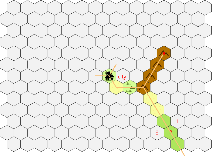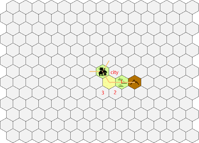 - Note: When establishing a road in the starting hex, extend it straight-ahead into the middle of the next hex before proceeding to step four. (This allows for the possibility of a fork in the road near the starting hex.)